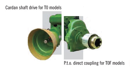 Overgear driven by cardan shaft of PTO (TOF-50A) or direct connection (TOF-50). Axial inlet and scroll outlet.